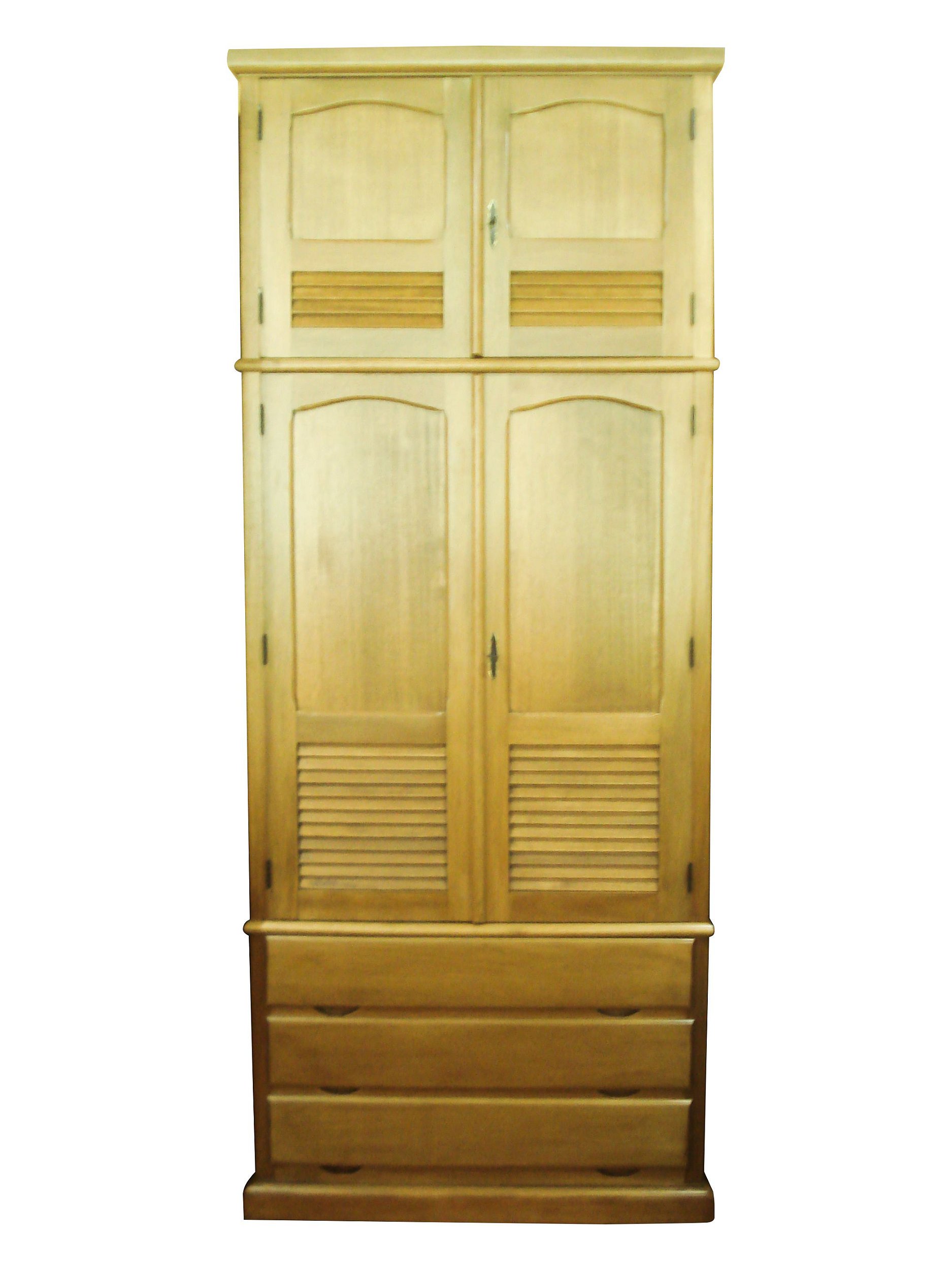 Guarda Roupas Rio Antigo Móveis com 3 Gavetas, portas lisas venezianas e maleiro Duplex. 105cm de Largura e 260cm de altura. Fabricação própria em madeira maciça. Vendas através do WhatsApp: (32) 98497-7462.